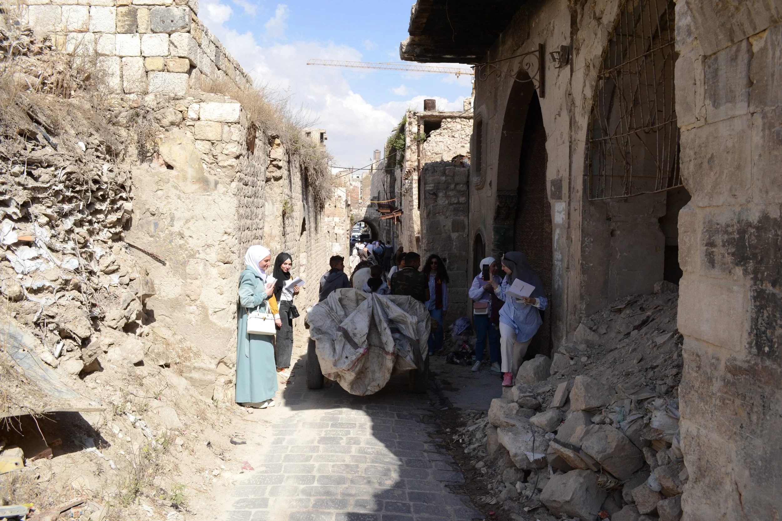 This two-day workshop, held in April 2025, invited 4th and 5th year architecture students to explore the Old City of Aleppo through walking and dialogue. Its aim was to engage with the sensory strata of history, memory, socio-cultural life, and materiality that unfold between the past, present, and future of a war-torn urban landscape.